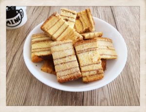 人気の四角いばーむくーへんを乾燥焼きにして、更にひと手間加えました。 ラスクのようなカリッとした食感ではなく、バームクーヘンのしっとりさを活かしたサクッという新食感のお菓子に 仕上げております。 袋から取り出しても、日持ちがするため、大容量の形状にしており 存在感のある商品です。
